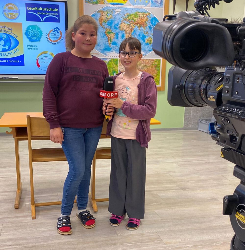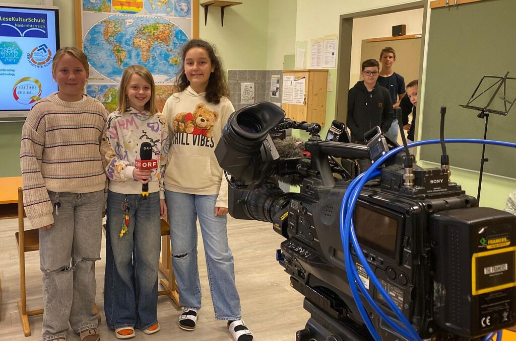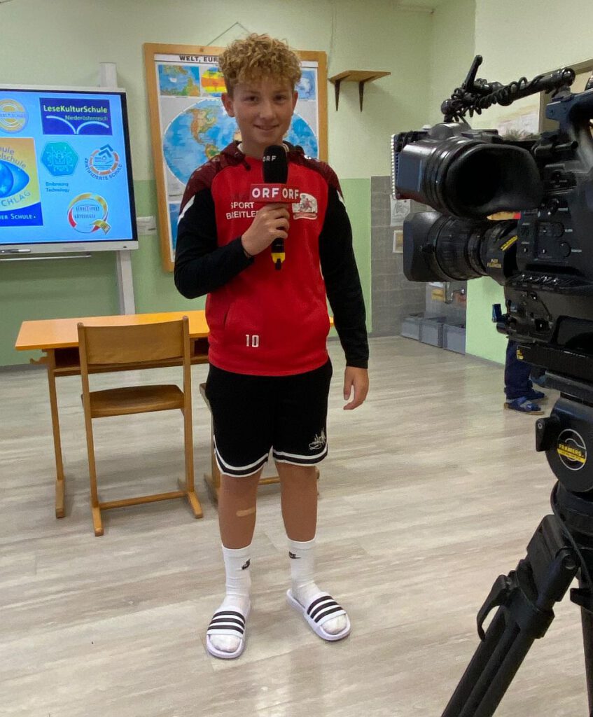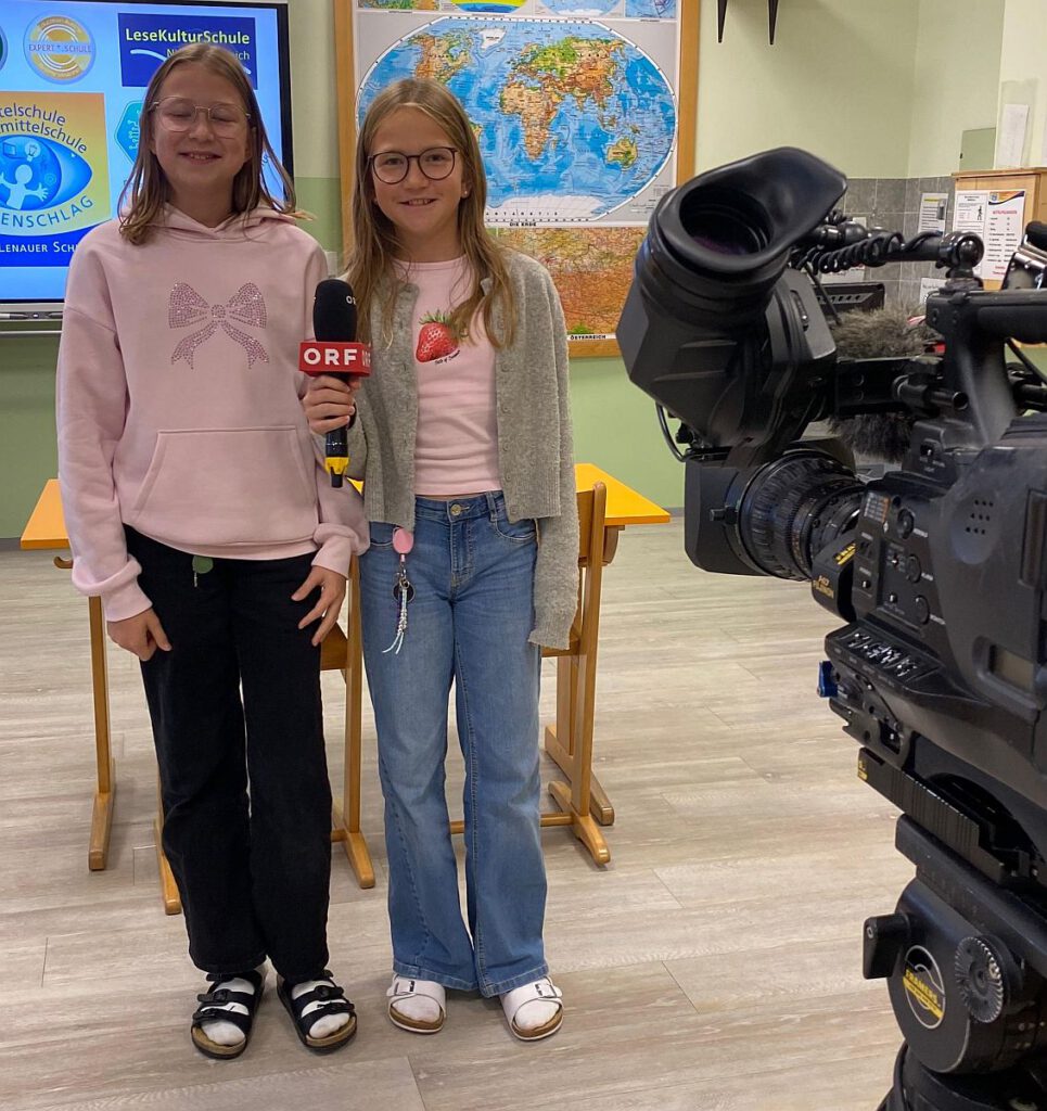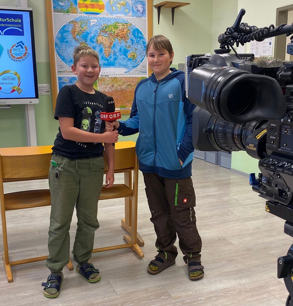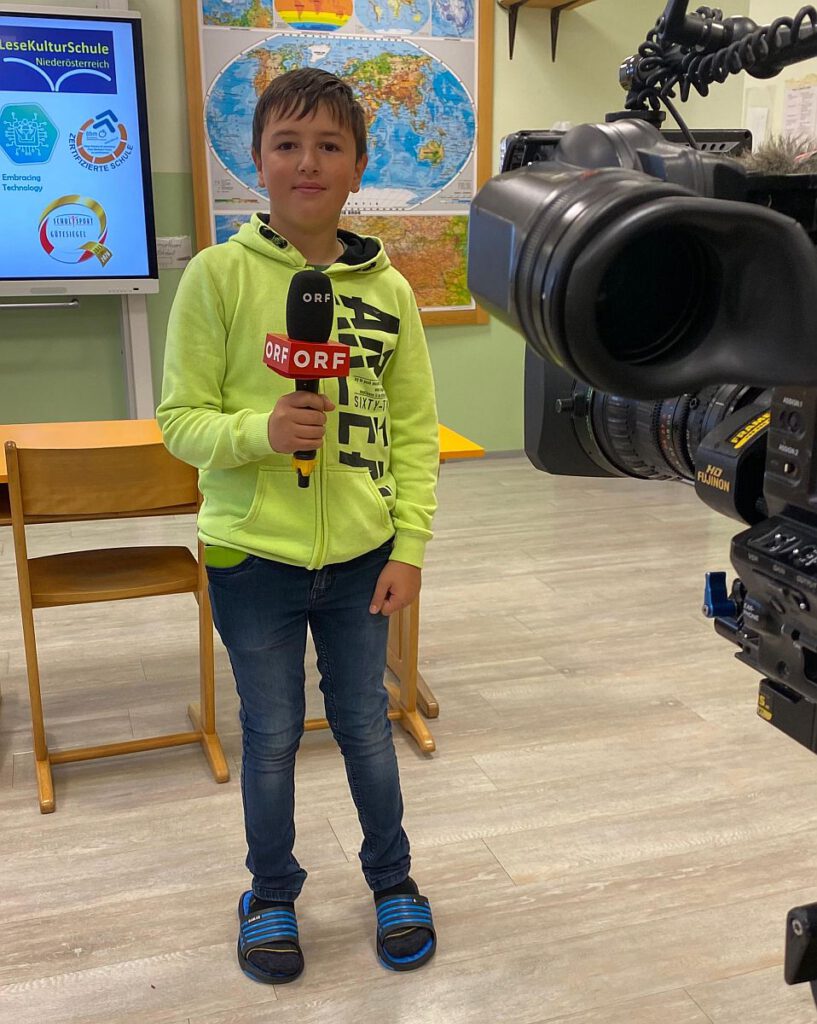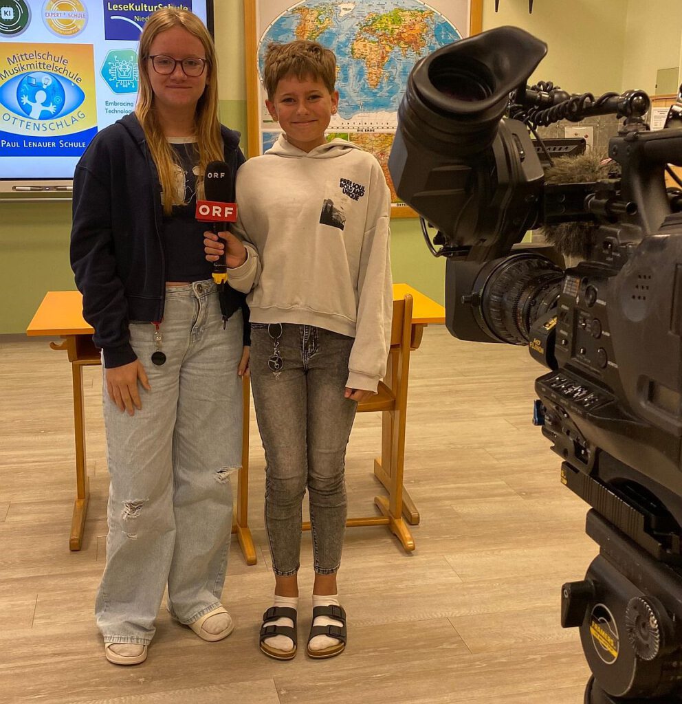 Bereits um 6 Uhr morgens besuchte uns an einem Mittwochmorgen im September ein Kamerateam des Landesstudios Niederösterreich, um mit unserer Schulleiterin in drei Live-Einstiegen für das bundesweit ausgestrahlte „Guten Morgen Österreich“ über KI in der Schule zu sprechen. In den Pausen zwischen diesen Einstiegen hatten die Schüler*innen Gelegenheit, ein bisschen Reporter zu spielen. Das war lustig 😉