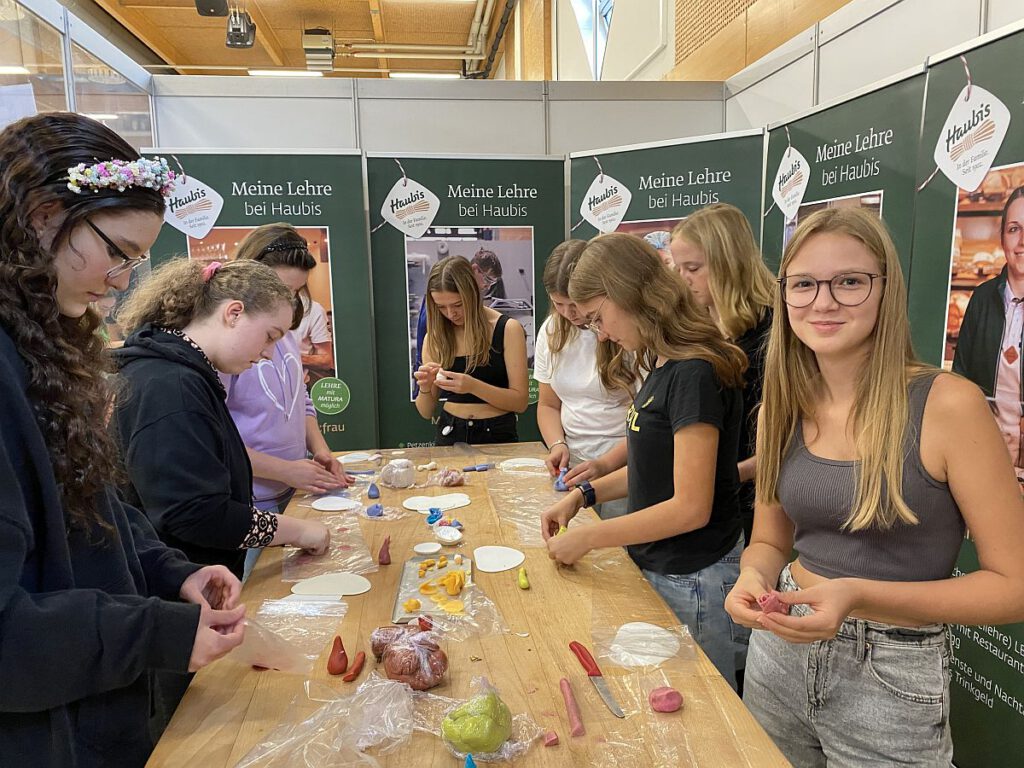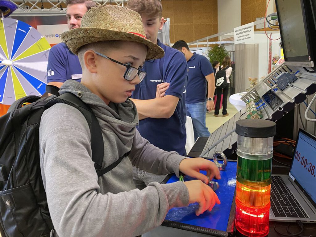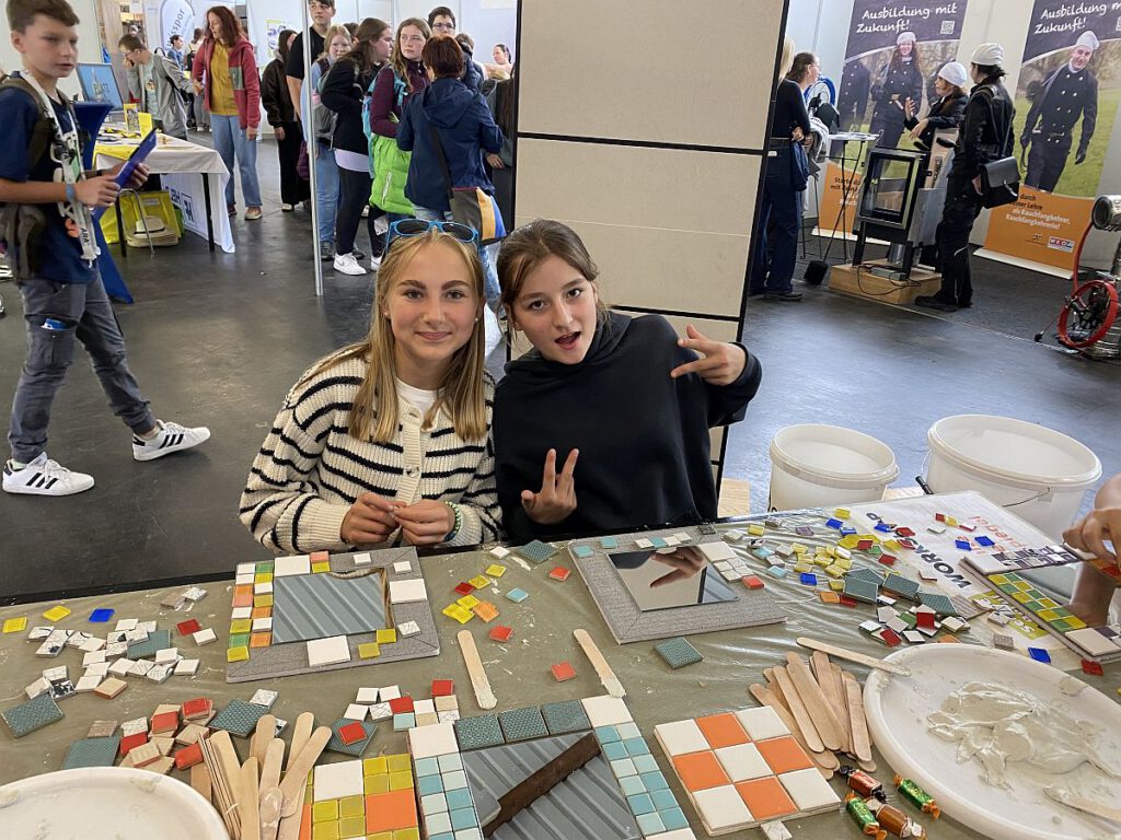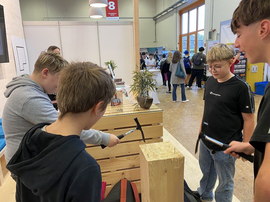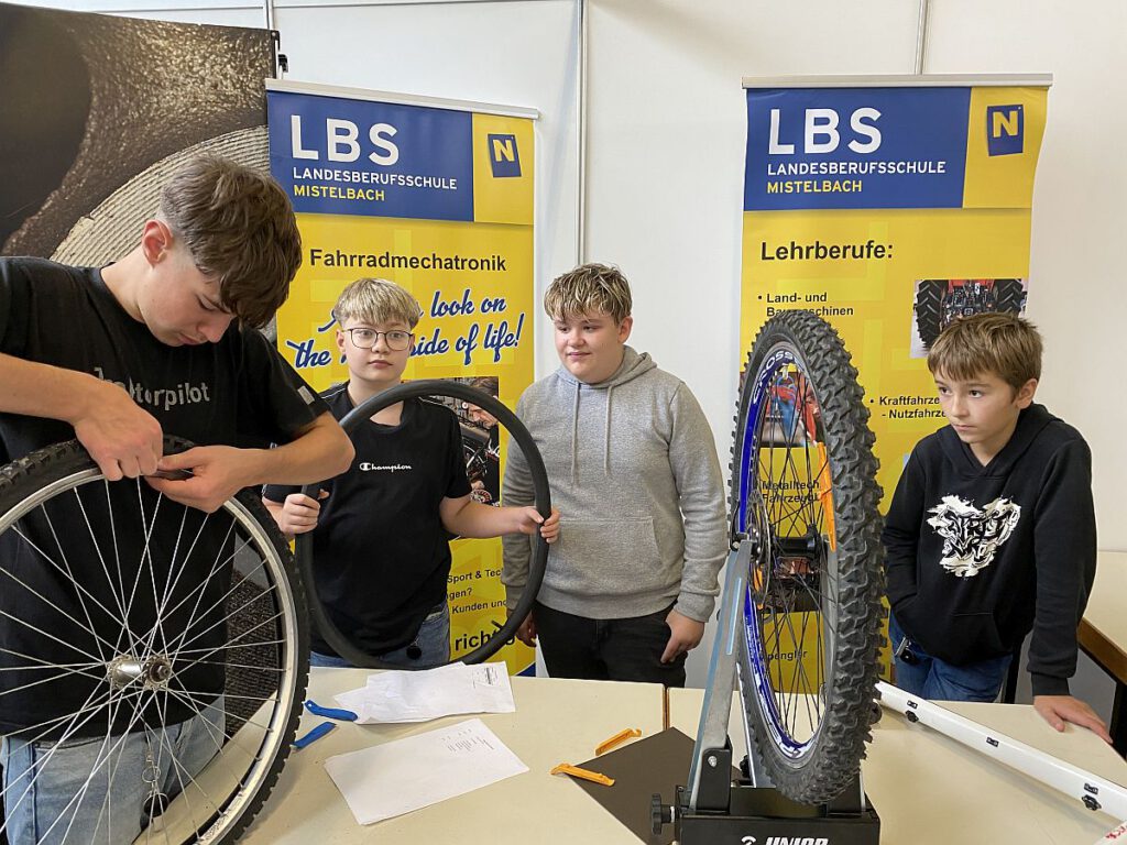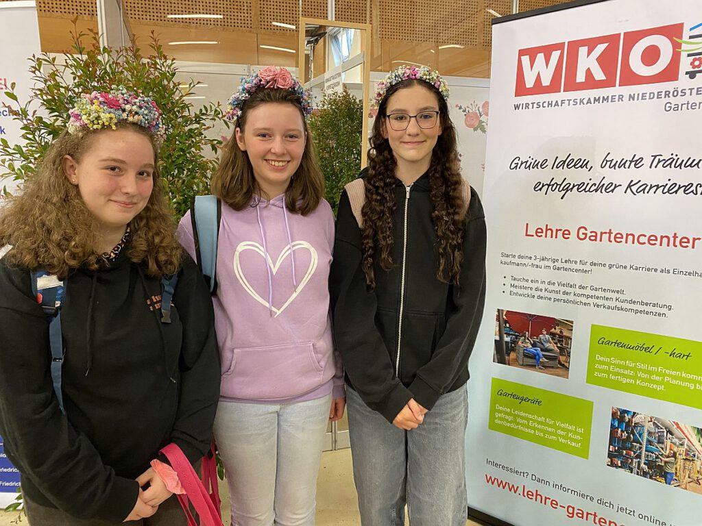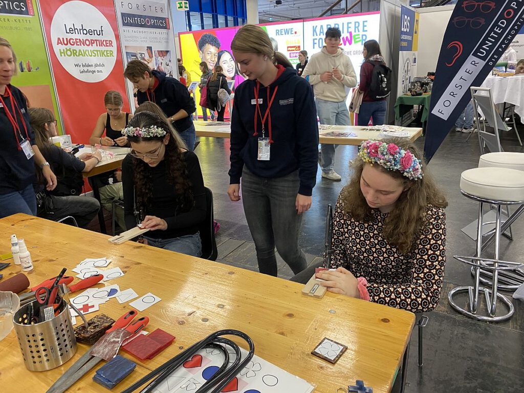 Einen informativen Vormittag erlebten die Schülerinnen und Schüler der 4. Klassen auf der Messe „Schule und Beruf“ in Wieselburg. Einerseits präsentierten zahlreiche weiterführende Schulen aller Fachrichtungen ihre Ausbildungsangebote. Andererseits boten zahlreiche Betriebe und Landesberufsschulen auf ihren Messeständen Workshops und Gelegenheiten zum praktischen Ausprobieren von berufstypischen Tätigkeiten an. So schmückten einige Haarreifen mit Blumen oder stellten Marzipanrosen her. Besonders beliebt waren Geschicklichkeitsangebote und große Maschinen.
