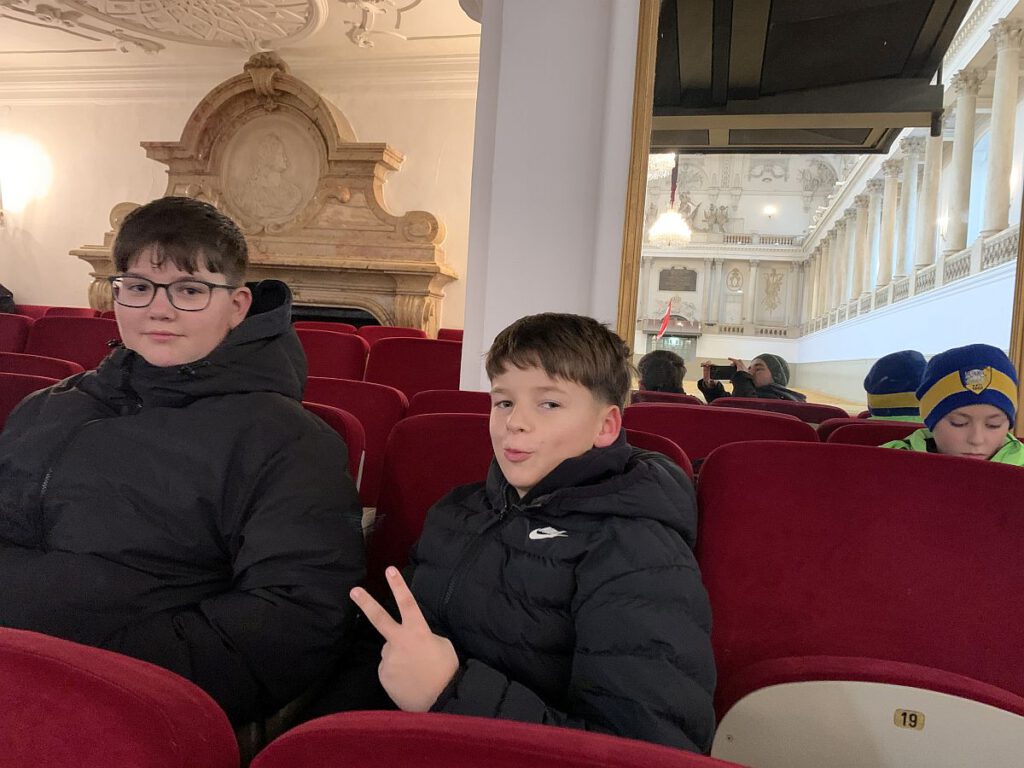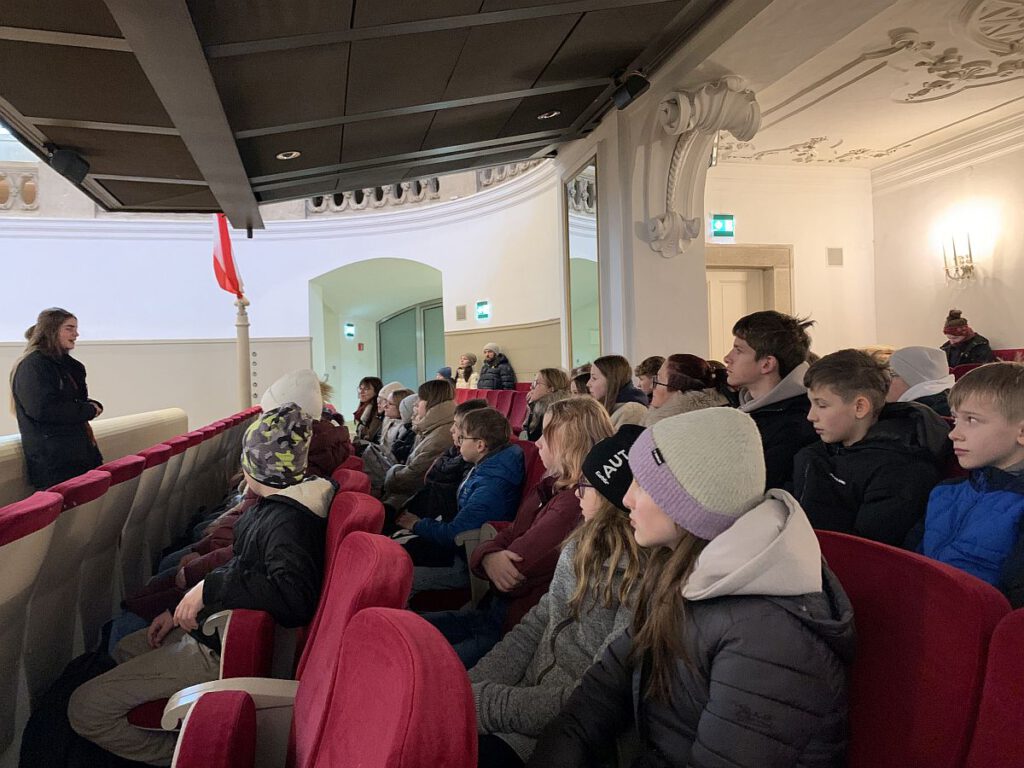 Gleich nach den Weihnachtsferien unternahmen die Schülerinnen und Schüler der ersten und zweiten Klassen einen spannenden und lehrreichen Tagesausflug nach Wien. Schon früh am Morgen machten wir uns mit dem Bus auf den Weg in die Hauptstadt. Die Stimmung war fröhlich und erwartungsvoll – immerhin standen drei ganz besondere Programmpunkte auf unserem Plan: das Weltmuseum, die Spanische Hofreitschule und ein gemeinsamer Theaterbesuch.
