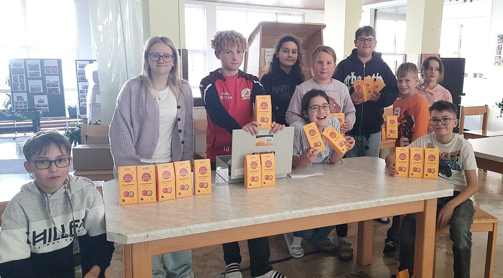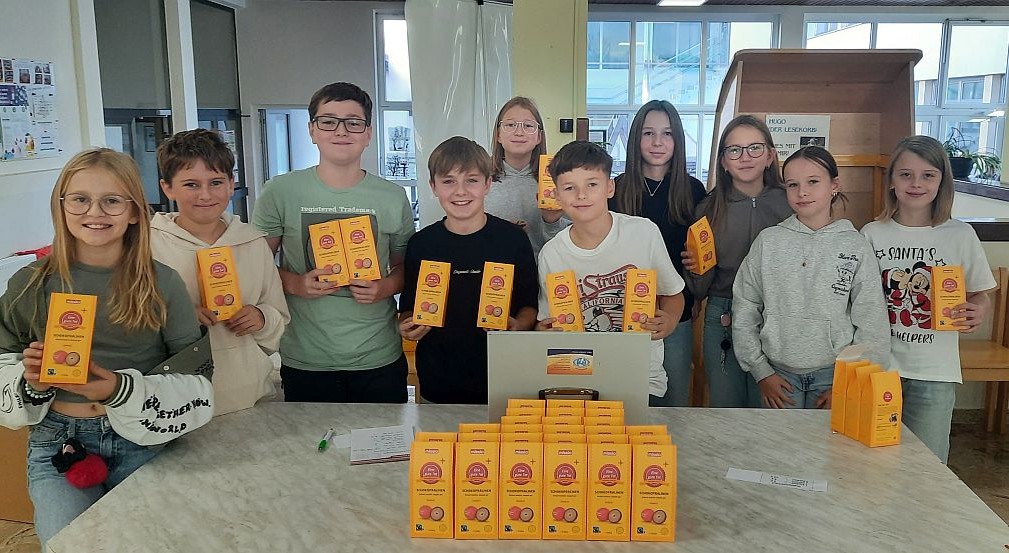Wie jedes Jahr zum Weltmissionssonntag verkauften die Schüler*innen der 2. Klassen in den Pausen die köstlichen Missio Pralinen.