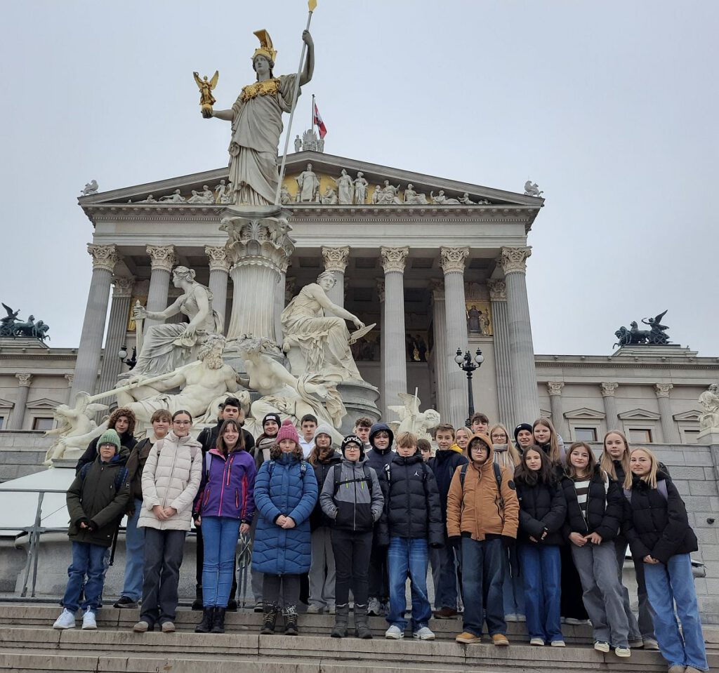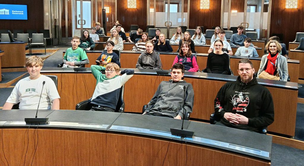 Zuerst besichtigten wir das Parlament, wo wir sehr nett von Lukas Brandweiner, Abgeordneter zum Nationalrat, empfangen und begrüßt wurden. Die anschließende Führung durch die historischen Räumlichkeiten war sehr interessant und kurzweilig und wir durften sogar auf den Sesseln der Abgeordneten Platz nehmen.