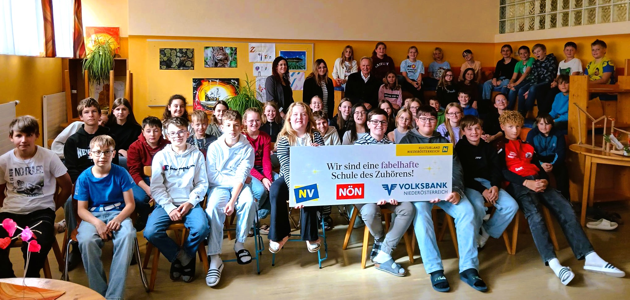 Man hätte eine Stecknadel fallen hören können, als die erste Klasse und die beiden zweiten Klassen am Erzählvortrag des Märchendichters Folke Tegetthoff teilnahmen. In gewohnt beeindruckender Weise gelang es ihm, die Schülerinnen und Schüler auf die Wichtigkeit des Zuhörens und die immense Bedeutung der Wahrnehmung aufmerksam zu machen und durch seine fesselnden Erzählungen in seinen Bann zu ziehen.  Im Anschluss durften noch Fragen gestellt werden, die Herr Tegetthoff ausführlich beantwortete, bevor er sich wieder verabschieden musste. Wir hoffen sehr, noch öfter in den Genuss seiner Erzählkunst zu kommen.