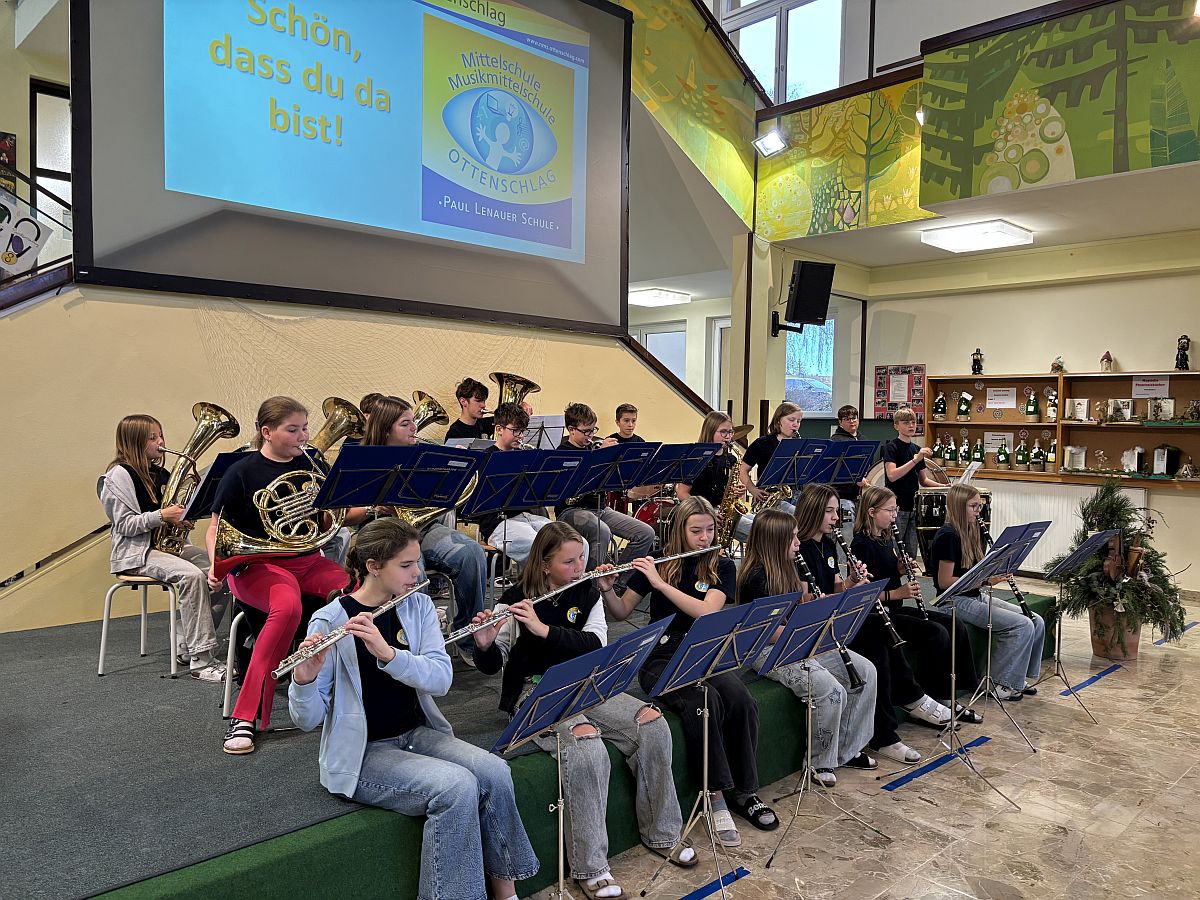 Viele neugierige Volksschüler*innen besuchten uns am Tag der offenen Tür und wurden gleich einmal vom Schulorchester begrüßt. Gut begleitet durch unsere Schulguides aus den 4. Klassen besuchten sie den Unterricht in Englisch, Deutsch, Biologie, Digitale Grundbildung, Kreatives Gestalten, staunten über verschiedene Versuche im Physiksaal, tobten sich im Turnsaal aus und lauschten zu guter Letzt den Darbietungen unserer Ensembles und Musikklassen. Von den Schüler*innen der 1. Klassen wurden sie sogar zum Tanz aufgefordert. Zwischendurch stärkten sich die Kinder bei einer gesunden Jause in der brandneuen Schulküche und lernten soziale Spiele mit unseren Peers kennen.